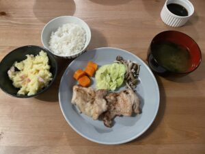 照り焼きチキンと蒸し野菜の献立。ポテサラ … 続きを読む 照り焼きチキンの献立